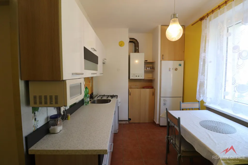 Zprostředkujeme prodej bytu v osobním vlastnictví 3+1 v cihlovém domě v Děčín II Kamenická. Byt se nachází v posledním nízkopodlažním domě, který prošel v nedávné době revitalizací, zateplení včetně střechy. Bytu náleží balkon a dva sklepy. Byt je po částečné rekonstrukci kdy proběhla úprava koupelny a výměna kuchyňské linky. Podlahy v ložnici a obývacím pokoji jsou plovoucí, v kuchyni a koupelně dlažba, v dětském pokoji jsou původní parkety, okna plastová. Byt má vlastní plynový kotel. Z balkonu je nádherný výhled do krajiny. Platby včetně FO činí 2.900,- + vlastní spotřeba elektřiny a plynu. V blízkosti domu se nachází zastávky MHD, školka, škola, nákupní možnosti, restaurace, nemocnice. Také zde můžete podnikat procházky do nedalekého lesoparku and #34;Kvádrberk and #34;. S financováním nemovitosti vám pomůže náš finanční specialista.