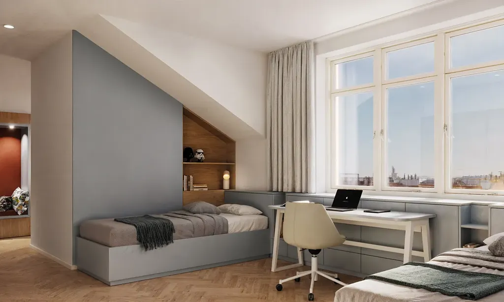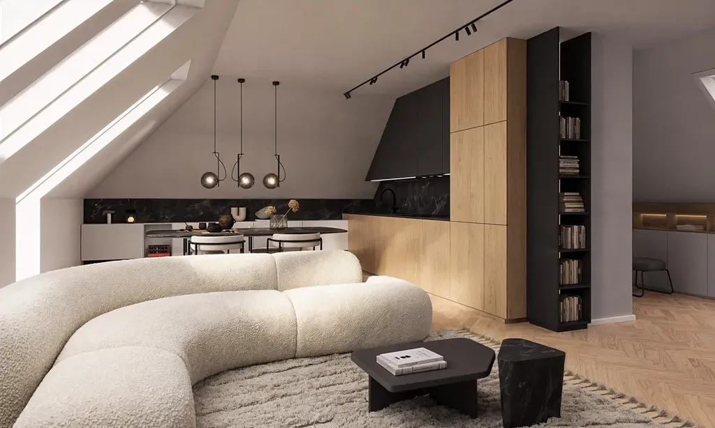 Půdní nástavba šesti nových bytů v dochozí vzdálenosti od metra Pražského povstání.