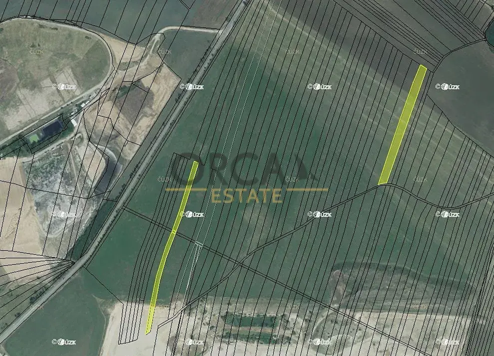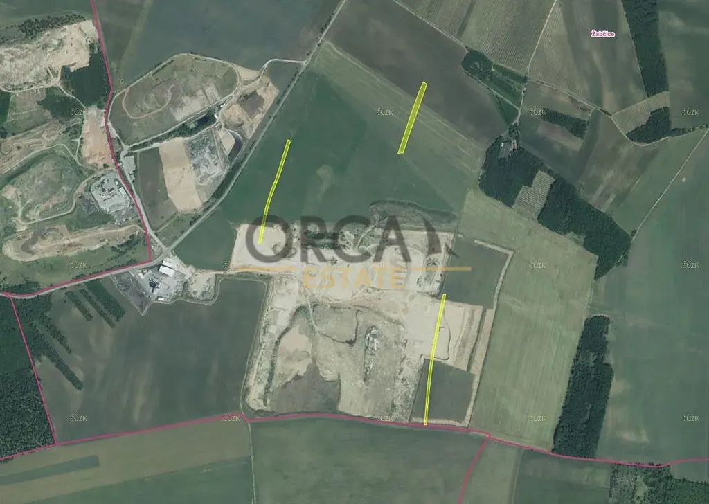Nabízíme k prodeji pozemky ve výlučném vlastnictví v k.ú. Žabčice, okres Brno-venkov. Jedná se o pět parcel č. 1308/72 o šířce cca 15 m a parcely 1308/106, 1309/8, 1310/75 a 1312/9 měří na šířku cca 8 m. Celková výměra prodávaných pozemků činí 10.011 m2. Pozemky jsou evidovány jako orná půda a ostatní plocha. Dle územního plánu se parcely 1308/106, 1309/8 a 1312/9 nachází v plochách těžby nerostů a v návrhu ploch pro drážní dopravu, parcela 1310/75 leží v ploše těžby nerostů a parcela č. 1308/72 leží v plochách zemědělských. Pozemky se nachází na jihovýchodě obce. V současné době jsou pozemky propachtovány, a to na dobu neurčitou s výpovědní lhůtou 1 rok.