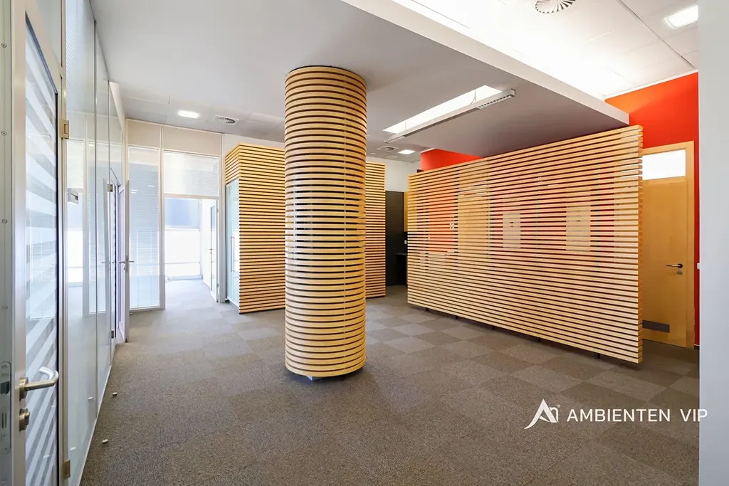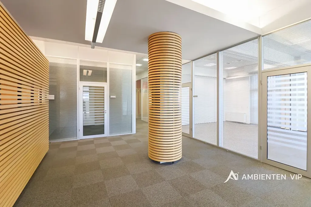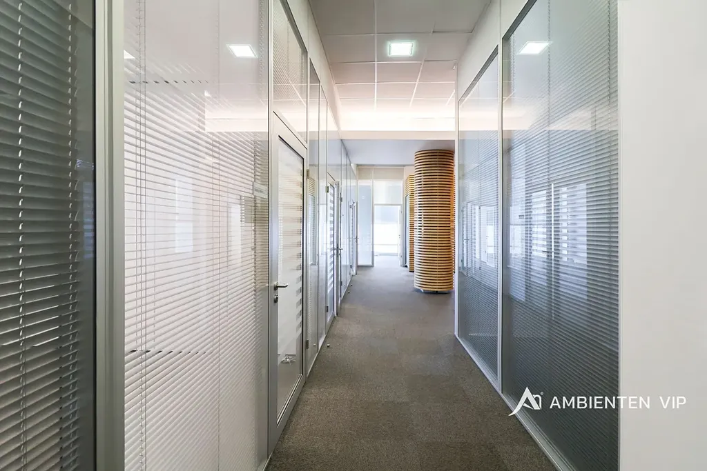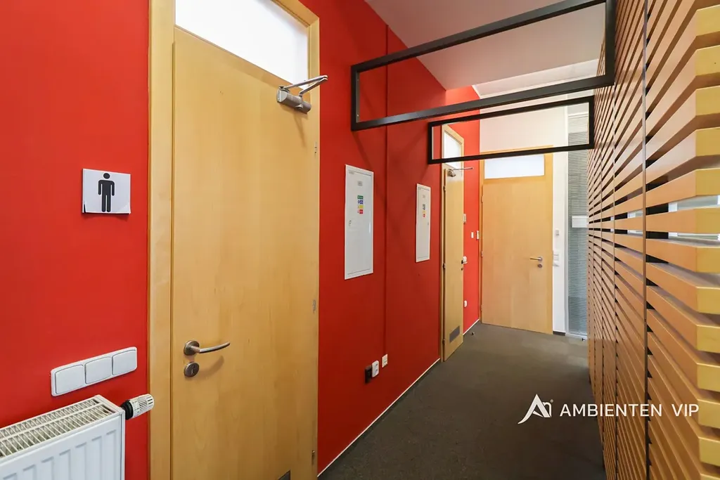 Prostory se nachází v 1. NP budovy a disponují pěti kancelářemi, dvěma zasedacími místnostmi, 2x sociálním zázemím s kuchyňkou a archivem. Jedna z kanceláří nabízí možnost využití jako open space pro 10 – 12 osob či rozdělení posuvnými příčkami až na 3 samostatné menší kanceláře. Všechny kanceláře a zasedací místnosti jsou vybavené klimatizačními jednotkami.