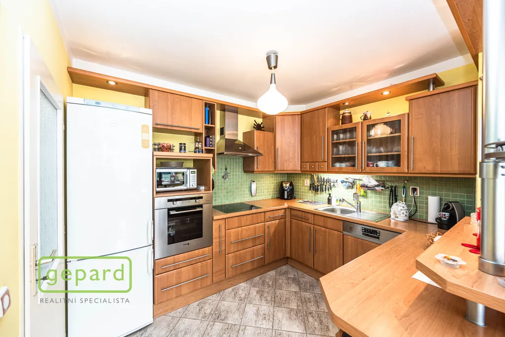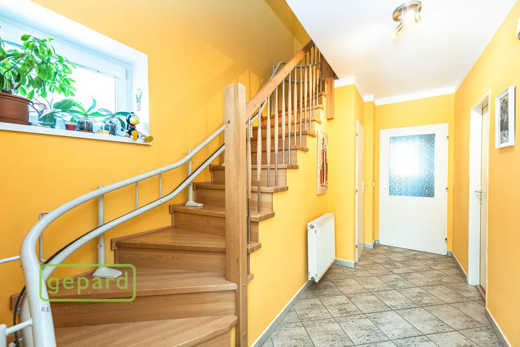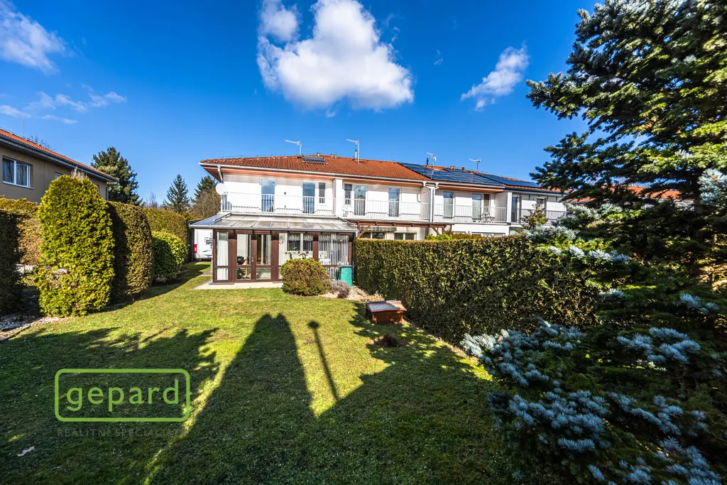 Zděný krajní řadový rodinný dům o obytné ploše 125 m2 nabízí na dvou podlažích dispozici 5+kk včetně dvou balkónů (1x krytý + 1x nekrytý) a je vhodný například pro pár v aktivním věku, rodinu s dětmi, zájemce hledající vícegenerační soužití nebo někoho, kdo ocení existenci instalovaného výtahu/do patra pojízdné sedačky.