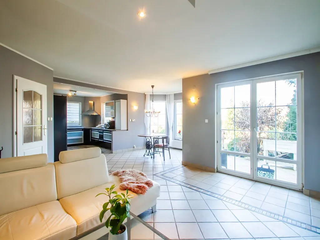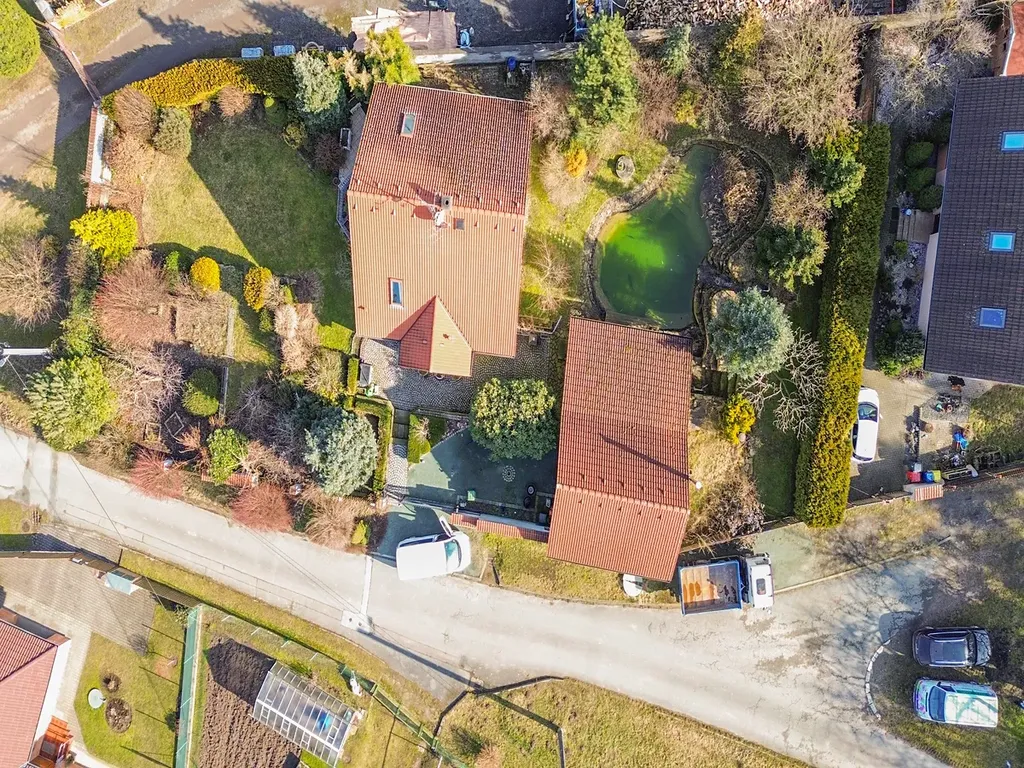 Rodinný dům byl zkolaudován v roce 2001 a je ve velmi dobrém stavu což zajišťuje masivní německá konstrukce z armovaných betonových panelů, které zajišťují výbornou tepelnou akumulaci, ticho a dlouhou životnost stavby. Dům zajišťuje vysokou odolnost a stabilitu. Přízemí domu je bezbariérové a nabízí vše, co moderní rodina potřebuje – garáž, parkování, prostornou zahradu a dokonce i biotop pro letní osvěžení. Užitná plocha domu činí 174 m² a celková plocha pozemku je 1152 m², což poskytuje dostatek prostoru pro různé venkovní aktivity. Dům je napojen na obecní vodu, ale je zde i studna, topení je řešeno plynovým kotlem.