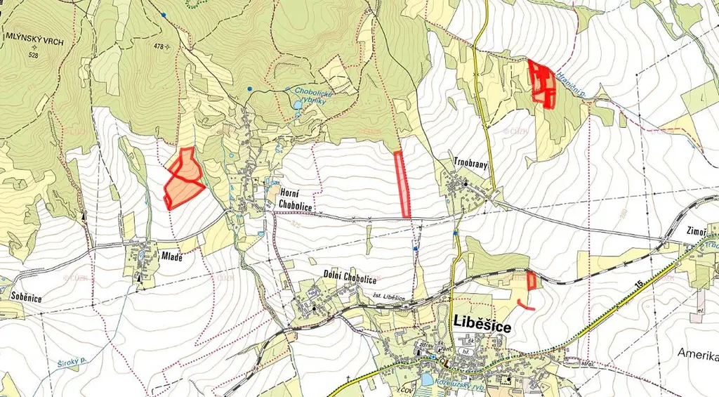 V katastrálních územích Dolní Chobolice, Horní Chobolice a Trnobrany, obec Liběšice, okres Litoměřice, nabízíme k prodeji vlastnictví na rozsáhlém souboru zemědělských a lesních pozemků. Celková výměra parcel činí 130 448 m², přičemž předmětem prodeje je 65 224 m².