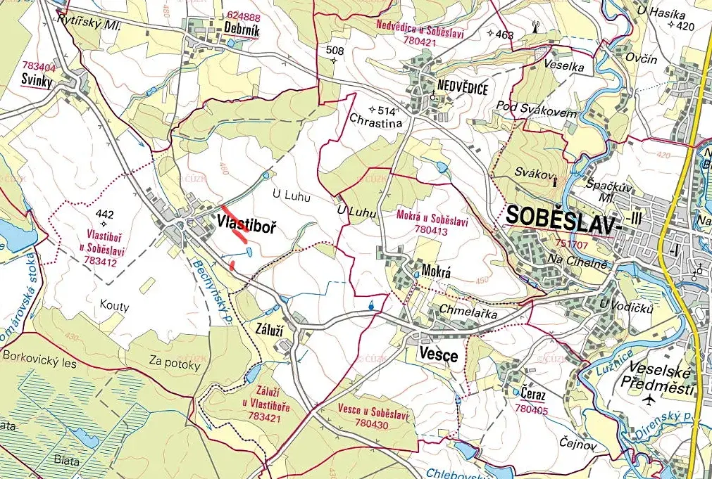 V katastrálním území Vlástiboř u Soběslavi, okres Tábor, nabízíme k prodeji soubor tří parcel orné půdy o celkové výměře 9 560 m². Pozemky jsou ve 100% vlastnictví bez jakýchkoli podílových omezení a jsou zapsány na listu vlastnictví č. 23.