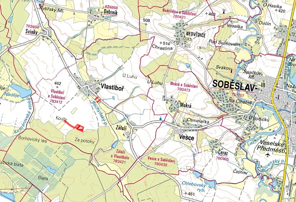 V katastrálním území Vlastiboř u Soběslavi, okres Tábor, nabízíme k prodeji soubor zemědělských pozemků ve výlučném vlastnictví, zapsaných na listu vlastnictví č. 23. Jedná se o různorodý celek zahrnující ornou půdu, trvalé travní porosty, ostatní plochy a drobnou vodní plochu.