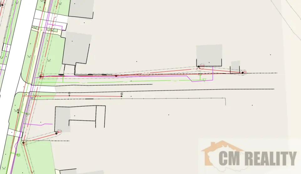 Inženýrské sítě: elektřina a plyn v dosahu (dle mapových podkladů vedeny téměř k pozemku), kanalizace v obci, na pozemku vlastní studna.