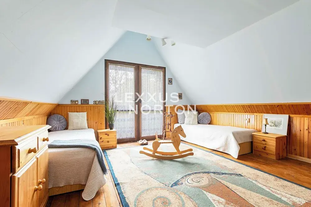 2. patro: prostorná ložnice a odpočinkový prostor nad schodištěm – ideální pro čtení, relax nebo jako prostor pro děti.