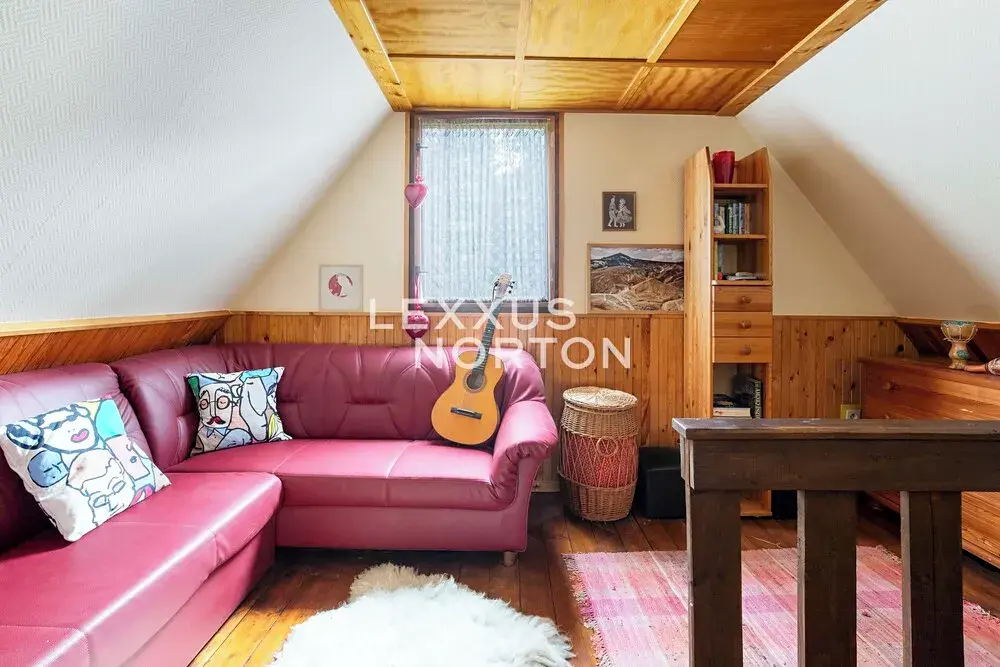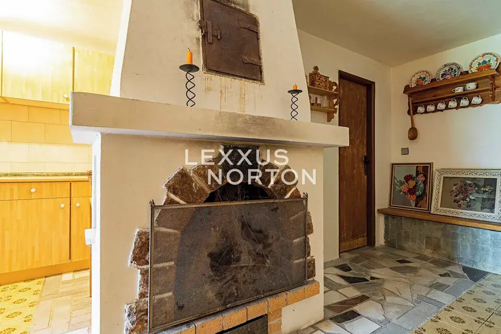 Přízemí / suterén: útulná obytná místnost s krbem, kuchyňským koutem a technickou místností – ideální jako vinný sklípek, klubovna nebo lze využít jako prostor pro hosty.