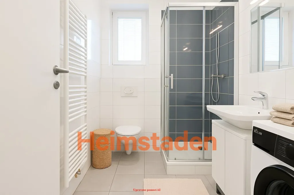 Koupelna disponuje vlastní pračkou. V přízemí domu je zároveň k dispozici společná prádelna s další pračkou a sušičkou za poplatek. Dům je vybaven výtahem a je zde možnost pronájmu garážového stání.