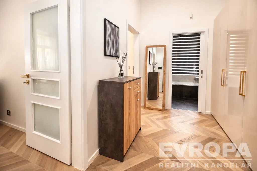 Nabízíme k pronájmu elegantní a kompletně zařízený apartmán o dispozici 2+kk/+terasa a celkové ploše 69 m², situovaný v reprezentativním historickém domě Clock Palace, v ulici U Zvonařky na prestižních Vinohradech (Praha 2).