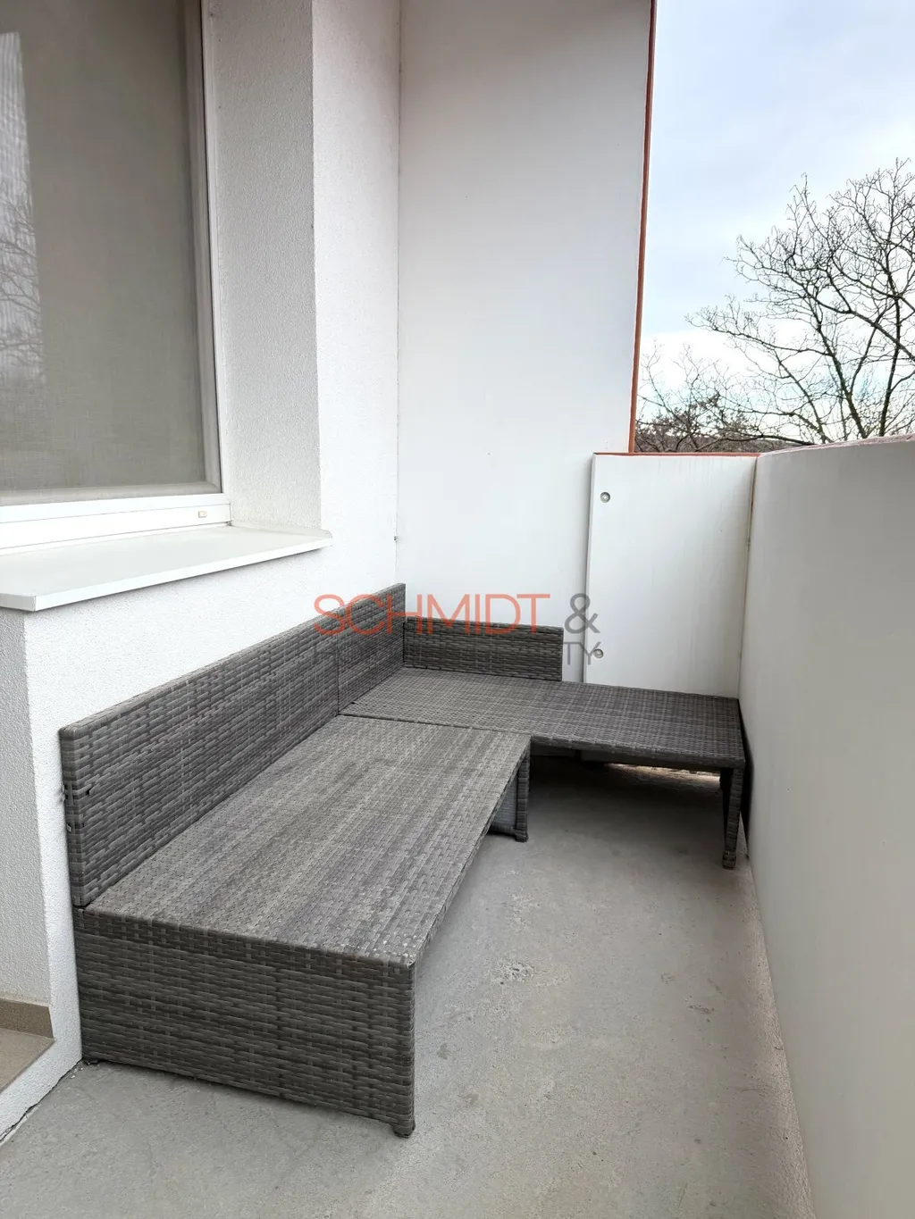 K bytu náleží balkon a sklepní kóje a příjemným bonusem je také výhled směrem na mandloňové sady. Byt je nezařízený, připravený k okamžitému nastěhování. Součástí je nová kuchyňská linka se spotřebiči: trouba, digestoř, myčka, lednice a mrazák. Dispozice nabízí dostatek prostoru pro rodinu i pro ty, kdo potřebují samostatný pokoj na práci. Parkování je možné u domu na veřejném parkovišti.