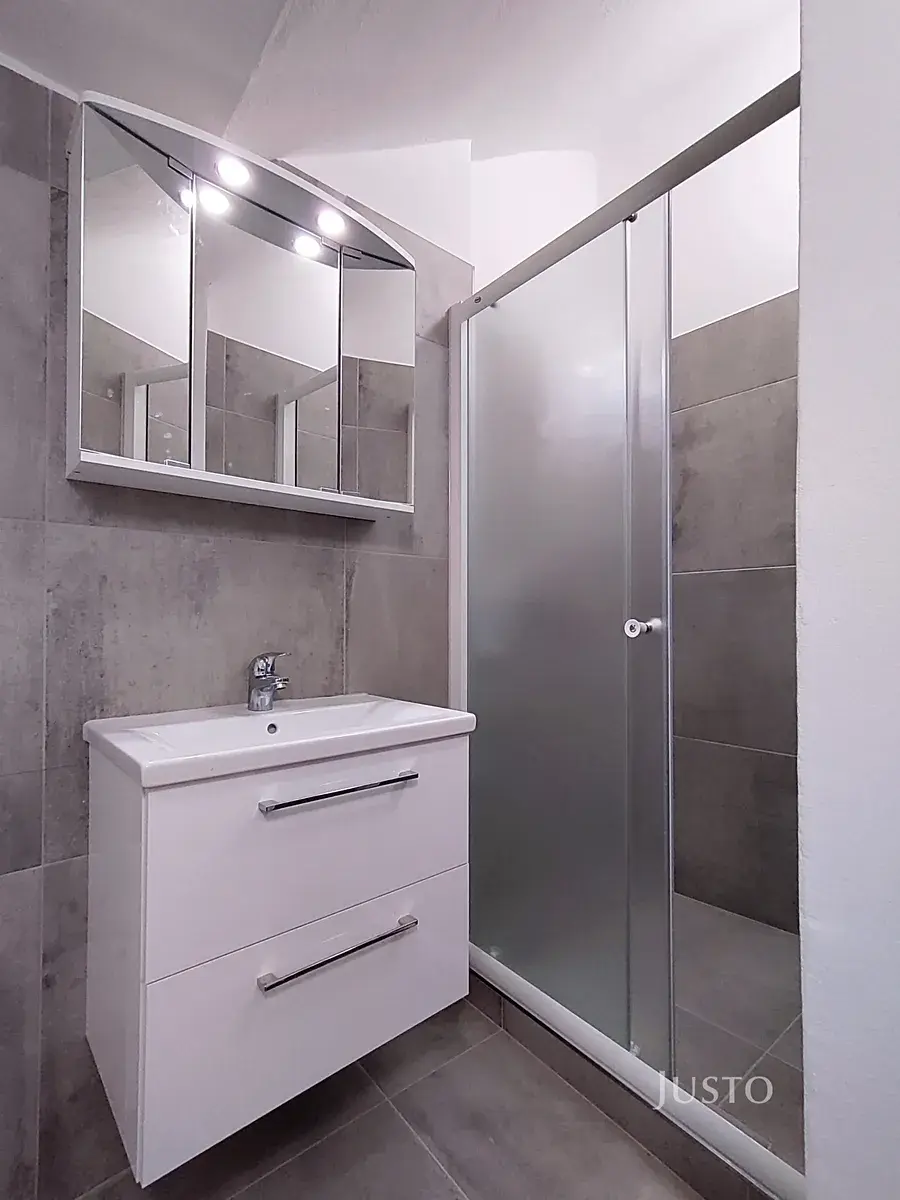 Byt o podlahové ploše 54,5 m² zaujme nejen svou polohou, ale i velmi příjemnou atmosférou, je vybaven moderní kuchyňskou linkou s vestavnými spotřebiči, nachází se v 1. patře.