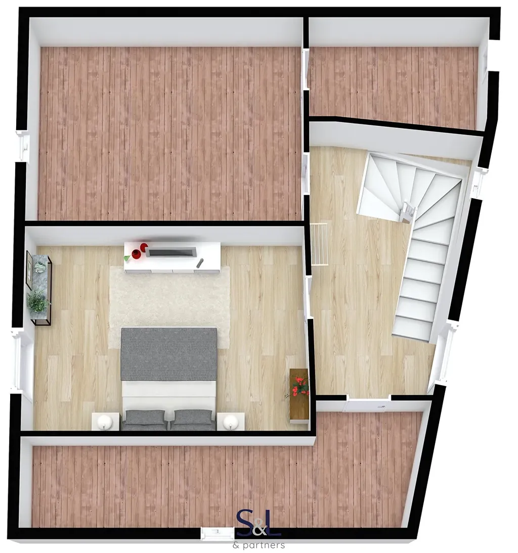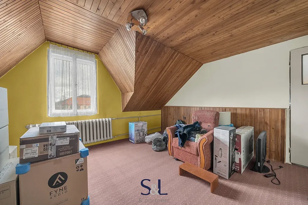 Podkroví (cca 20 m² + půdní prostor) – dva pokoje, možnost vybudování třetí bytové jednotky (aktuálně jsou zkolaudovány dvě bytové jednotky)