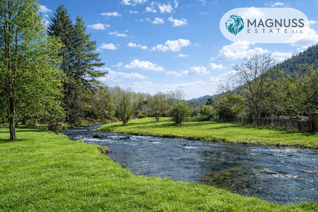 Pozemek o 3 000 m² poskytuje prostor pro zahradu, relaxační zónu, saunu, pergolu nebo další doplňkové stavby v souladu s CHKO. Částí pozemku prochází vedení VN.