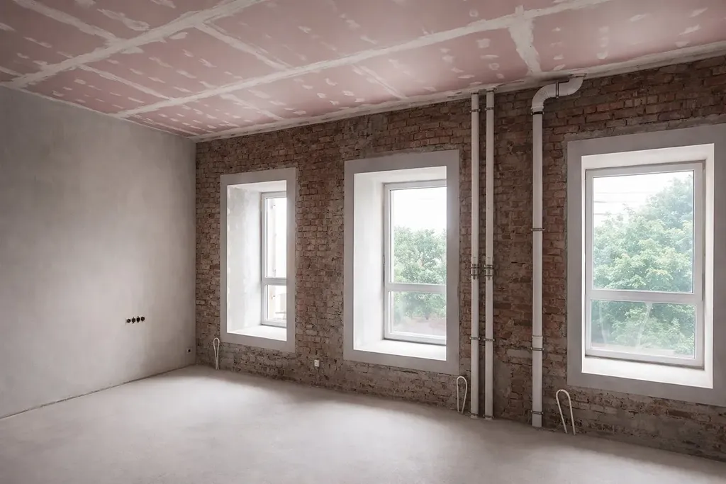 V bytě jsou dokončeny nosné konstrukce, okna, základní rozvody a část instalací. Naopak chybí finální povrchy podlah, kompletní vnitřní povrchové úpravy, sanitární vybavení, kuchyňská linka a část technologií. Tento stav umožňuje přizpůsobení interiéru individuálním požadavkům.
