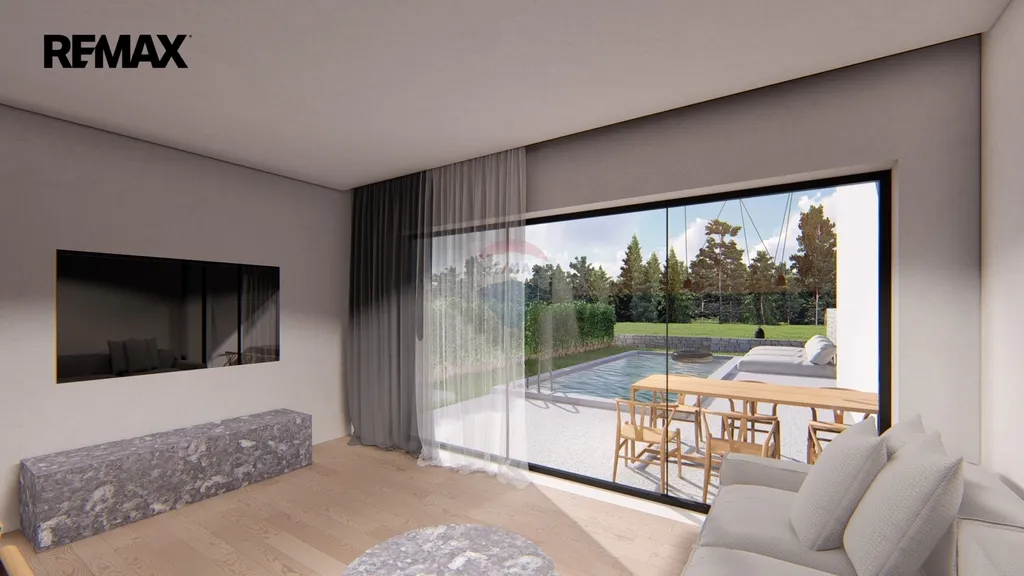Vysoce kvalitní a moderní konstrukce, tepelná izolace (10 cm), PVC okna a skleněné stěny (šířka 3,30 m), elektrické žaluzie, klimatizace v pokojích a jídelně/obývacím pokoji, podlahové vytápění v koupelnách, vysoce kvalitní keramika a sanitární keramika v koupelnách.