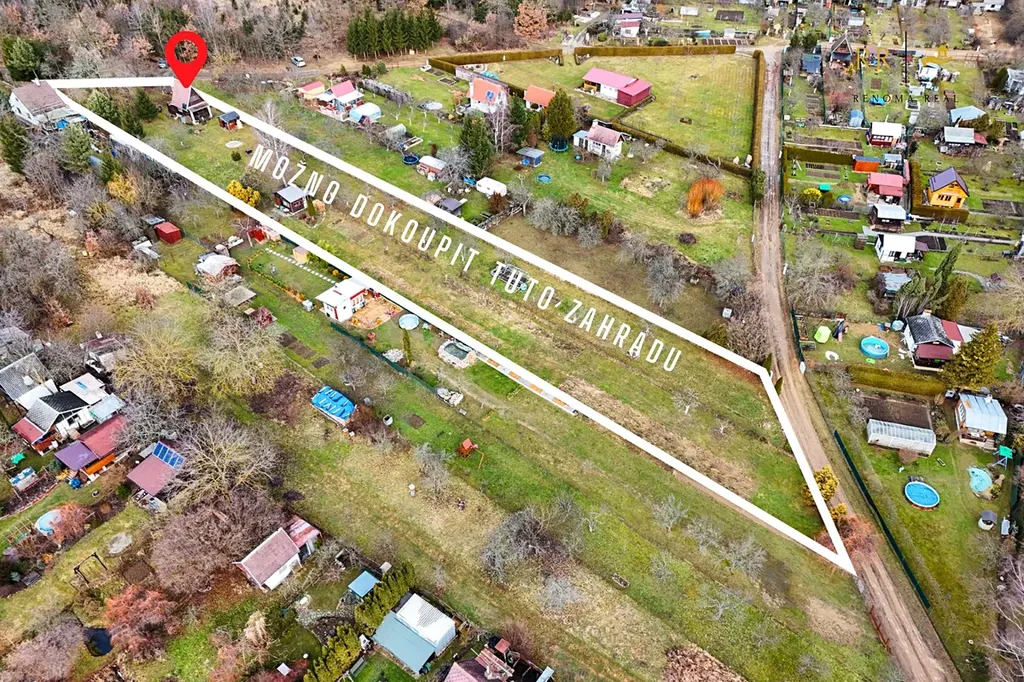 K tomuto podílu je možné přikoupit i vedlejší zahradu ve výhradním vlastnictví (parc. č. 1341/1 + 1341/2), a získat tak jako celek výrazně větší souvislou plochu.