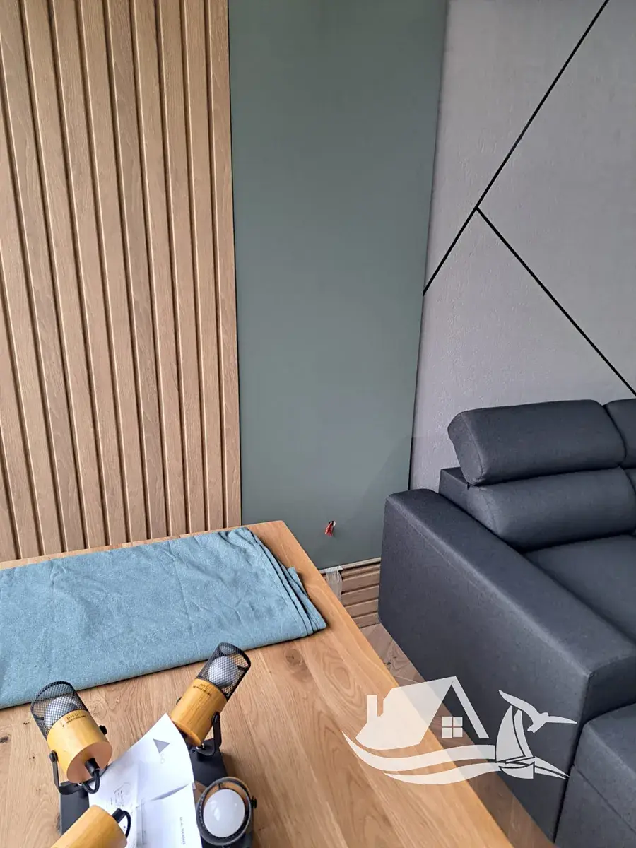 Interiér působí čistě, svěže a prakticky. Dispozice nabízí obývací pokoj s kuchyňským koutem, samostatnou ložnici a koupelnu. Prostor je navržen tak, aby byl pohodlný jak pro vlastní bydlení, tak pro krátkodobý či dlouhodobý pronájem.