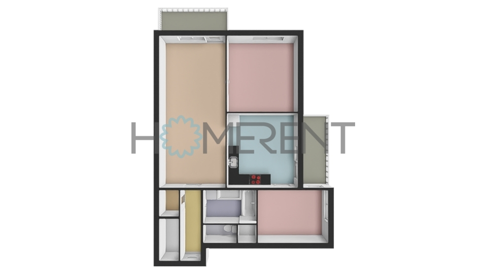 Jedná se o byt 3+1 o velikosti 83m2 s dvěma balkóny umístněným ve 1. patře v domě s výtahem.