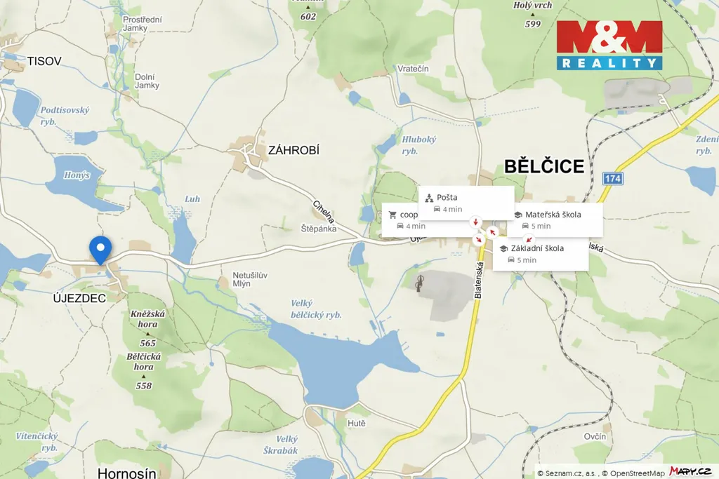Prodej chalupy v původním stavu na návsi části obce Bělčice - Újezdec. Újezdec je vesnice v okrese Strakonice a současně místní část města Bělčice. Zastavěná plocha a nádvoří včetně malé předzahrádky je celkem 199 m2. Součástí prodeje je i stodola na pozemku o výměře 80 m2, která je poblíž nemovitosti. Obytná část domu je určena ke kompletní rekonstrukci. Dispozice vstupní chodba, dveře se schody na půdu, dále komora a vstup do sednice, která je průchozí do malé ložnice. Chybějící sociální zařízení, lze vybudovat z komory. Chalupa delší dobu neobydlena, el. energie v v současné době odpojena, voda napojena na obecní studnu, která je nově vyskružována. V blízkosti autobusová zastávka, Objekt vhodný po rekonstrukci k rekreaci nebo po půdní vestavbě i k rodinnému bydlení. Obec Újezdec se nachází v nádherné jihočeské krajině plné lesů, luk a rybníků. Nevyniká velikostí, ale svojí malebností a krásami okolní přírody. Více informací rádi poskytneme v RK.