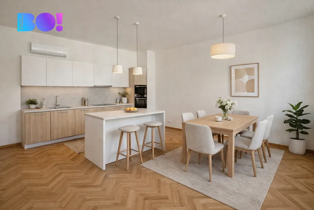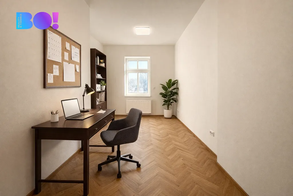 Obývací část působí velmi vzdušně a nabízí dostatek místa pro rodinný život i reprezentativní posezení. Kuchyň je řešena samostatně, prakticky a s důrazem na funkčnost. Byt je ideální pro rodinu, která hledá dostatek prostoru, soukromí i kvalitní zázemí pro práci z domova.