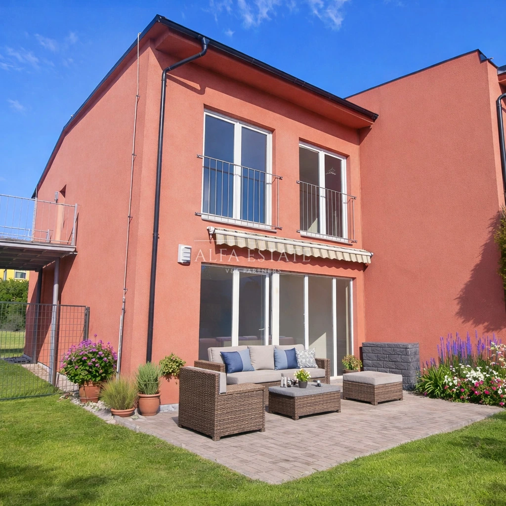 Exkluzivně si vám dovolujeme nabídnout pronájem řadového domu v ulici Řadová, ve velmi oblíbené městské části Tašovice. Dům 4kk se zastavěnou plochou 79m2, užitnou 150m2, disponuje rovinatou zahradou o výměře 232m2. Samotný dům sestává ze dvou obytných podlaží, kdy v přízemí nalezneme předsíň, koupelnu se sprchou, toaletu, prostorný kuchyňský kout s obývacím prostorem, z něhož vejdeme na terasu, dále potom jedním pokojem a komorou. Po dřevěném schodišti vejdeme do prvního patra, kde nalezneme koupelnu, vybavenou jak sprchovým koutem, tak vanou, dále potom toaletu, šatnu, vstup na terasu, velmi prostornou a vzhledem k umístění oken( jižní strana) slunnou ložnici a jeden další pokoj. Vytápění, ohřev vody a vaření je řešeno plynem. V současné době není kuchyňská linka vybavena lednicí a myčkou, které lze po dohodě s pronajímatelem dodat. Dvě parkovací místa jsou k dispozici před domem, Vedle domu se nachází menší parkoviště. Nedaleko domu se nachází obchodní centrum Globus, Möbelix, Tesco. Dům zajistí příjemné a klidné rodinné bydlení s velmi dobrou dostupností. Měsíční nájmené činí 30.000,-Kč. Jistina 60.000,-Kč, poplatek za zprostředkování nájmu a právní servis ve výši jednoho nájmu. Zálohy za spotřebu el. energie, plynu a vody bude přepsána na nájemníka. Dům je volný k nastěhování.Ji
