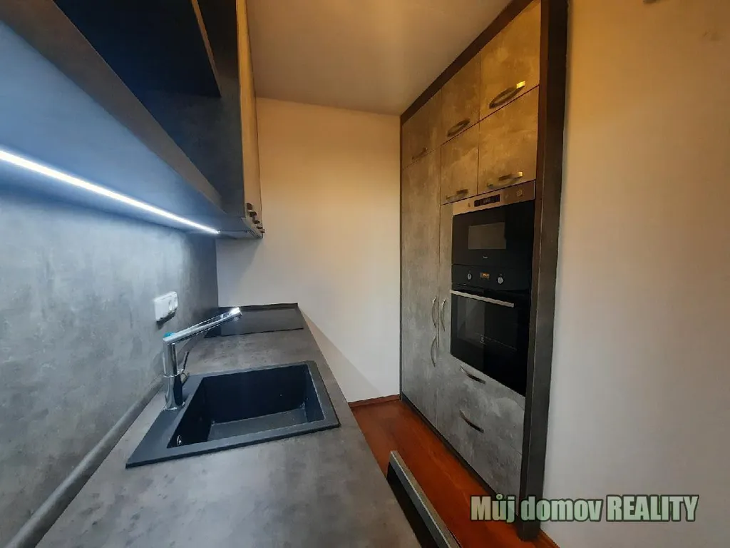 Součástí bytu je kuchyňská linka vybavená spotřebiči: myčka nádobí, sklokeramická varná deska, trouba, mikrovlnná trouba, lednice s mrazákem. Dispozice bytu nabízí příjemné bydlení pro jednotlivce i pár. K bytu náleží komora a lodžie poskytující další úložný prostor a možnost relaxace.
