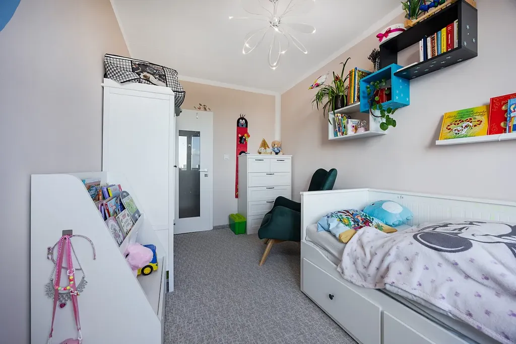 Byt je orientován na východ, což zajišťuje příjemné ranní světlo a komfortní klima v odpoledních hodinách. Dispozice 3+kk je ideální pro rodinu s dětmi, pár hledající pracovní prostor nebo jako investice k pronájmu.