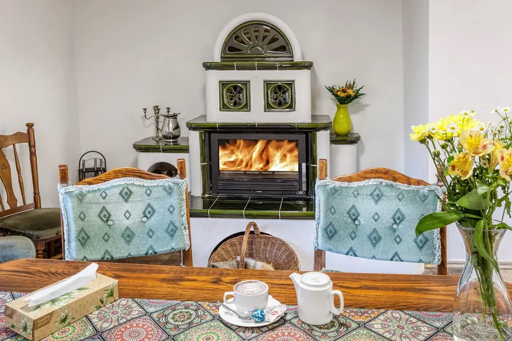 Vytápění krbem a el. přímotopy. Vodovod obecní. Kanalizace žumpa / vývoz max.1x ročně / s přepadem do obecní kanalizace.