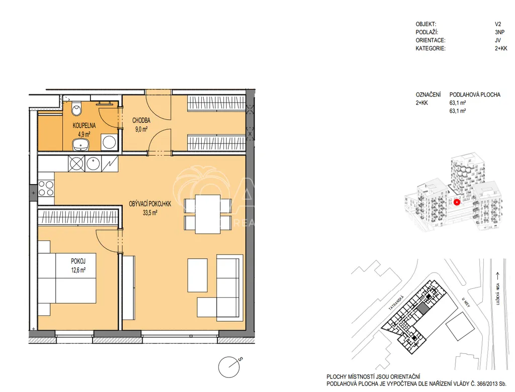 Pronajmu na 3 měsíce prostorný byt 2+kk o výměře 63 m2 + sklepní kóje cca 4m2 v novostavbě z roku 2022 Rezidence Nábřeží (energetický štítek B) v samém centru Liberce.