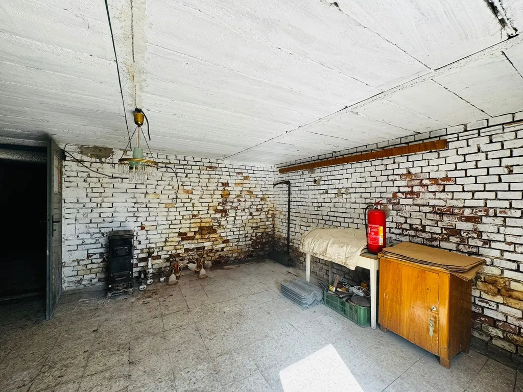 Spodní část tvoří dvě sklepní místnosti – větší prostor vhodný například jako garáž, dílna nebo sklad a menší sklepní místnost.
