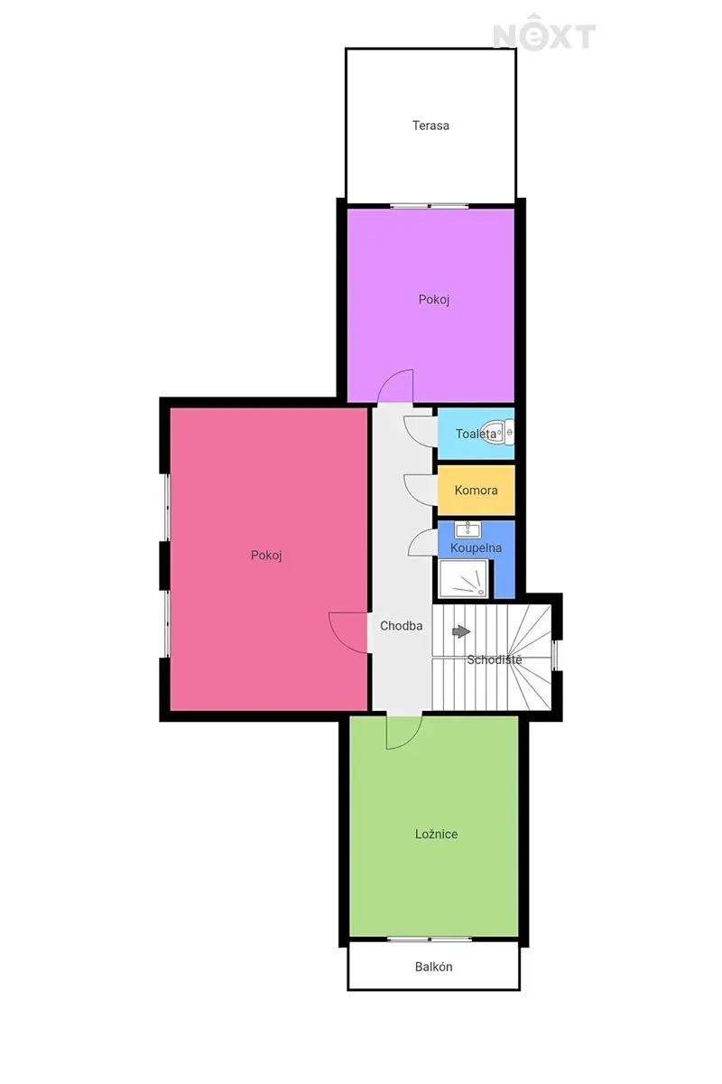 V podkroví se nachází prostorná terasa o velikosti 20,70 m² a lodžie 4,20 m², ideální pro relaxaci, posezení s rodinou nebo venkovní stolování. V podkroví je také pokoj, který je podle projektové dokumentace možné rozdělit na dva samostatné pokoje – navíc jsou připraveny trubky pro případnou kuchyni, takže je možné vytvořit dvě plnohodnotné samostatné jednotky. Tento prostor tak nabízí skvělou flexibilitu pro rodiny, které chtějí bydlet společně, ale odděleně, nebo pro investory hledající možnost pronájmu dvou samostatných bytů.
