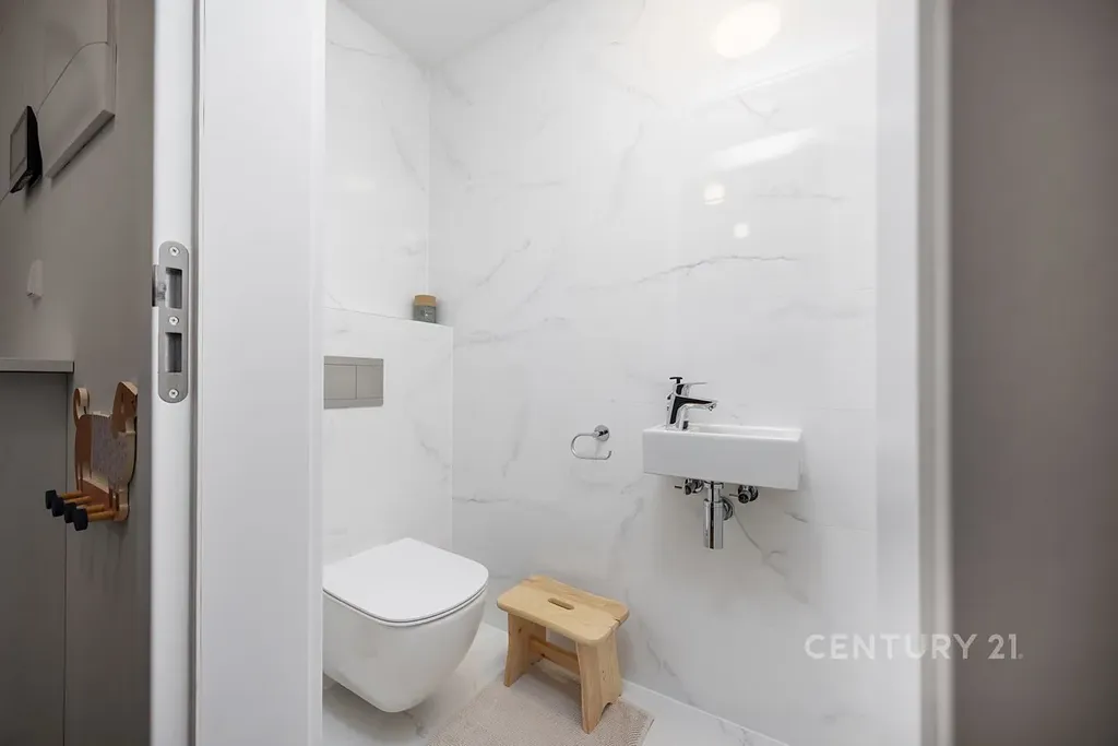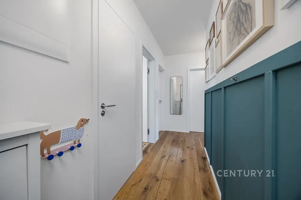 • Prémiové standardy: Velkoformátová okna, dřevěné podlahy, špičková sanita a systém rekuperace pro neustále čerstvý vzduch. Tady se na materiálech nešetřilo.