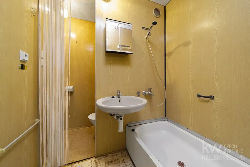 Byt je řešen jako otevřený prostor s kuchyňským koutem. Okno je orientováno na východ, což zajišťuje příjemné ranní světlo. Součástí bytu je koupelna s vanou a toaletou.