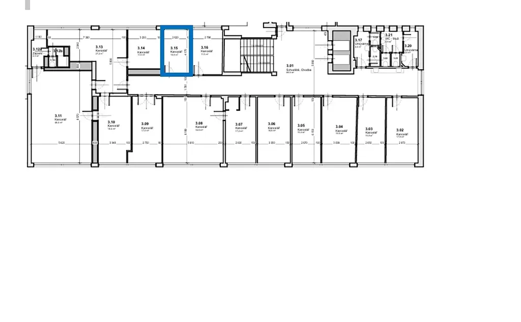 V rámci podlaží je k dispozici sdílené sociální zázemí, v současnosti dokončujeme výstavbu společné kuchyňky která bude k využití pro všechny nájemce kanceláří.