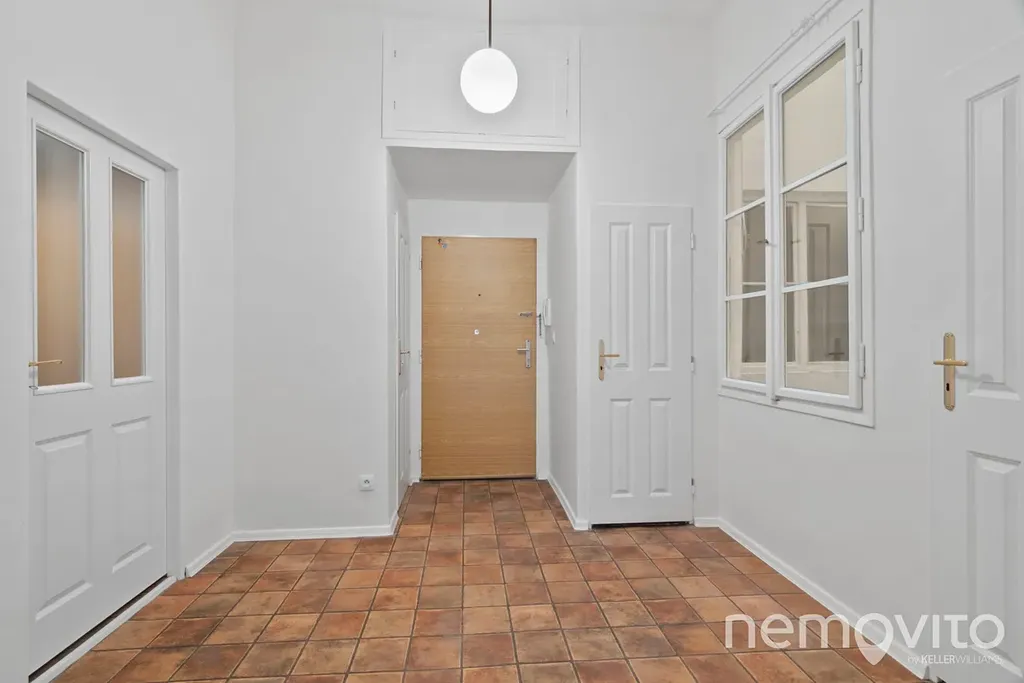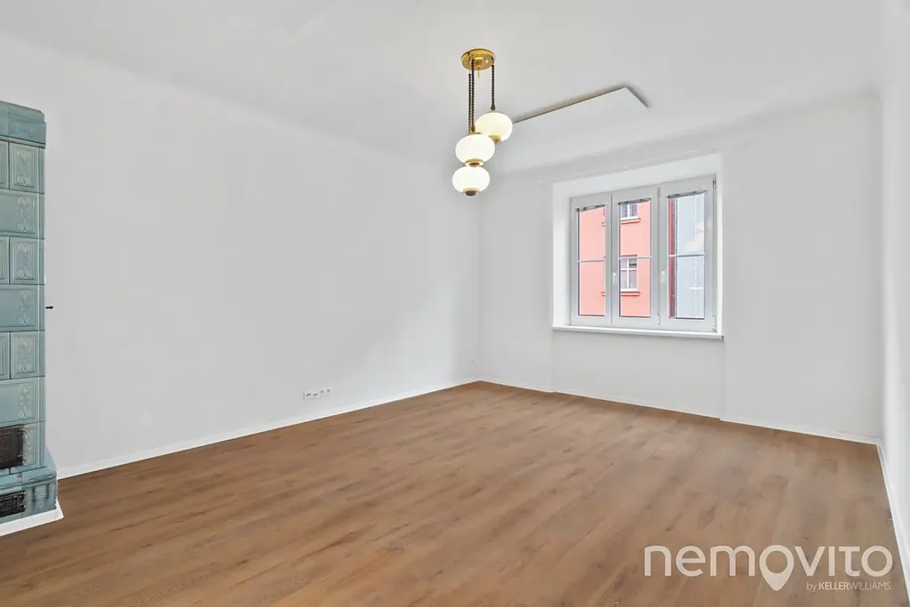 Jednotka se nachází ve 2. patře cihlového domu s výtahem a prošla rozsáhlou a citlivou rekonstrukcí, která byla realizována s důrazem na zachování původního charakteru historického domu. V interiéru tak naleznete zrenovovaná původní kachlová kamna, stylovou koupelnu a velká okna, která zajišťují dostatek denního světla ve všech místnostech.