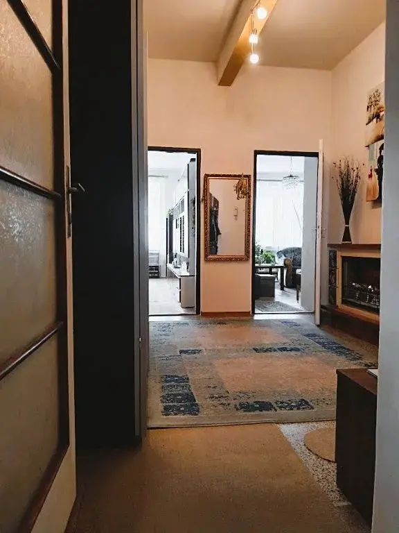 Okna v bytě jsou plastová, dveře dřevěné. Podlahy v pokojích tvoří původní dubové parkety v dobrém stavu a v kuchyni s jídelnou je položeno lino. Vytápění ústřední, zajištěné centrálním plynovým kotlem v domě, teplá voda zánovním elektrickým bojlerem. Do bytu je zaveden plyn – v kuchyni plynový sporák.