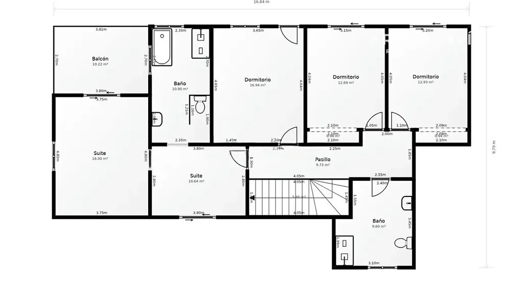 Dispozice nabízí 6 ložnic, z toho 5 typu en-suite, prostorný obývací pokoj s jídelnou a vstupem na terasu, pracovnu, fitness, saunu, vinný sklep, spíž a garáž pro 4 vozy. Většina ložnic má vlastní terasu, jedna z nich nabízí výhled na moře.