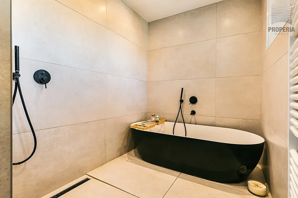 Dům disponuje užitnou plochou 306 m², z toho 230 m² tvoří obytná tři patra a zbytek technické zázemí a garáž v suterénu. Zahrada o velikosti 467 m² je krásně udržovaná, se vzrostlými stromy, klidnými zákoutími a krytým posezením s venkovním krbem a vířivkou, které vytvářejí soukromou oázu pro odpočinek a relaxaci.
