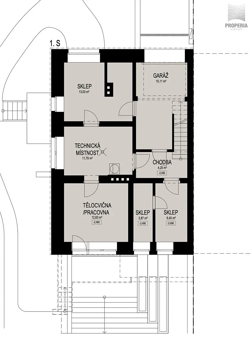 Součástí domu je garáž pro menší vůz a možnost parkování na vjezdu. Na vybudování dalšího parkovacího stání přímo na pozemku před domem je k dispozici projekt se stavebním povolením.