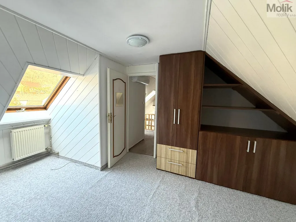 Nabízíme k pronájmu prostorný mezonetový byt 3+1 o velikosti 100 m, který se nachází v podkroví rodinného domu v klidné lokalitě nedaleko Hradu Hněvín.