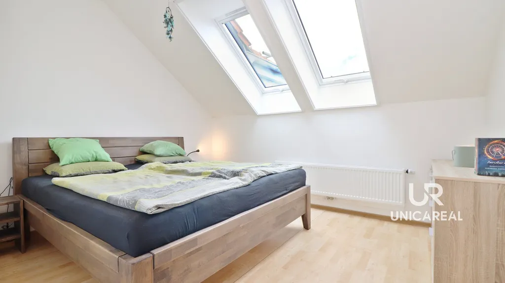• Po dřevěném schodišti z obývací části se dostanete do útulného podkrovního pokoje.