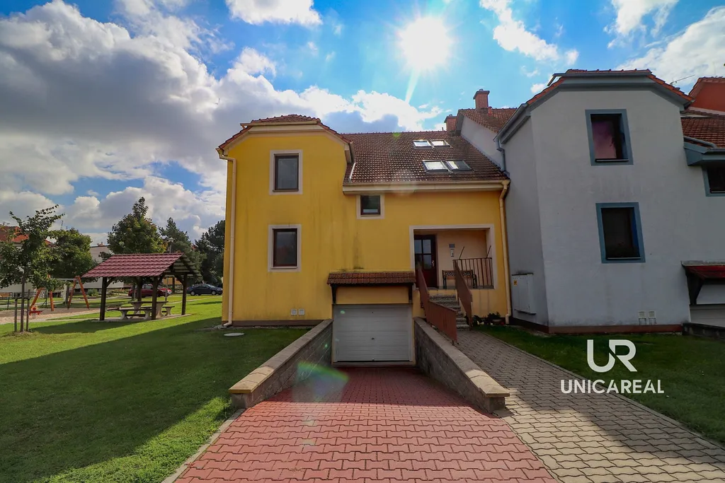 K bytu náleží vyhrazené garážové stání nacházející se pod domem a také podíl na pozemku za domem, který slouží jako zahrada. Je to ideální prostor pro odpočinek, posezení, grilování nebo hraní dětí. Díky tomu si můžete užívat klidné prostředí a kousek zeleně přímo u domu.