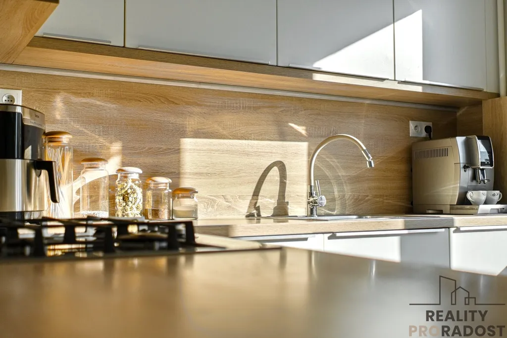 Rekonstrukce zahrnovala novou elektroinstalaci v mědi, nové rozvody vody, moderní kuchyňskou linku se spotřebiči (myčka, trouba, plynový sporák, digestoř), koupelnu s prostorným sprchovým koutem a nové podlahy. Byt nabízí dostatek úložného prostoru díky dvěma komorám.