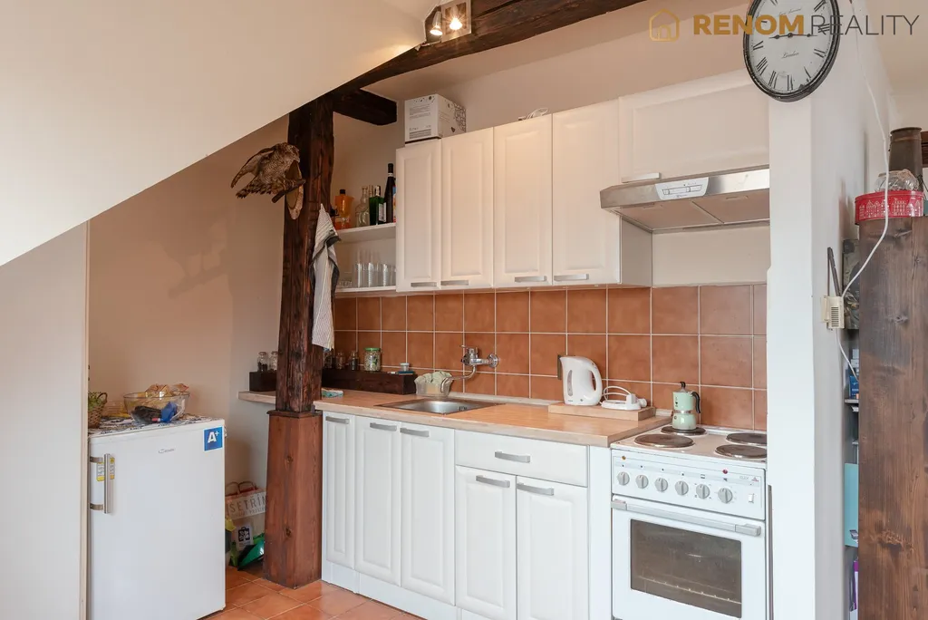 Prodej cihlového bytu o dispozici 1+kk na ulici Komenského, Šternberk. Jedná se o podkrovní byt umístěný ve 2. patře bytového domu. Za domem uzavřený dvůr s vlastním vjezdem vč. zděné stavby – slouží částečně jako kolárna.
