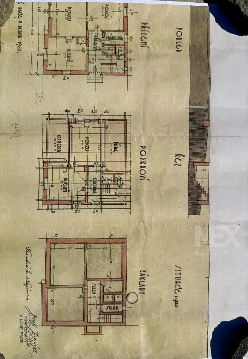 - Dům je určen k rekonstrukci, přičemž současní majitelé již provedli zásadní přípravné práce – odstranění původních omítek a podlah, stržení starých stropů a sanaci vlhkosti. Nový majitel tak může ihned navázat rekonstrukcí bez nutnosti náročných demoličních prací.