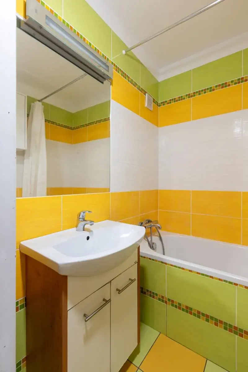 sporákem, troubou a digestoří. V koupelně najdeme vanu, umyvadlo a