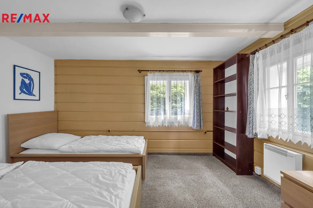 Objekt je v původním, avšak udržovaném stavu, což umožňuje novému majiteli buď okamžité užívání, nebo rekonstrukci dle vlastních představ a potřeb. Dispozičně je chalupa řešena jako 4+1 kde v přízemí najdete zádveří, prostornou chodbu, dvě samostatné ložnice, kuchyň s jídelním koutem, koupelnu, toaletu, sklad a schodiště do sklepa. V podkroví je útulná hala a dvě samostatné ložnice. K chalupě náleží také, prostorná dvoupatrová kolna s užitnou plochou 25 m², která poskytuje dostatek úložného prostoru pro sportovní vybavení, zahradní náčiní nebo kutilské potřeby.