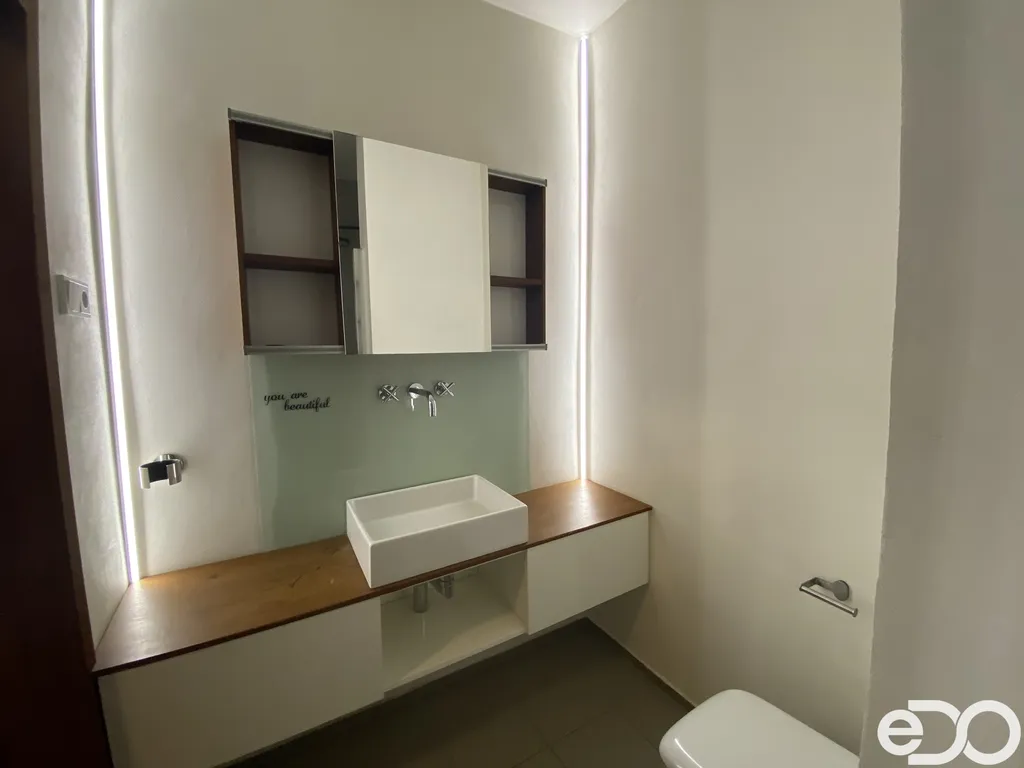 Byt působí velmi příjemně a vzdušně. Dispozice nabízí komfortní obývací pokoj s kuchyňským koutem, samostatnou ložnici, koupelnu, toaletu a vstupní předsíň. Lodžie poskytuje příjemné místo pro ranní kávu nebo večerní odpočinek. Součástí pronájmu je také praktická sklepní kóje.