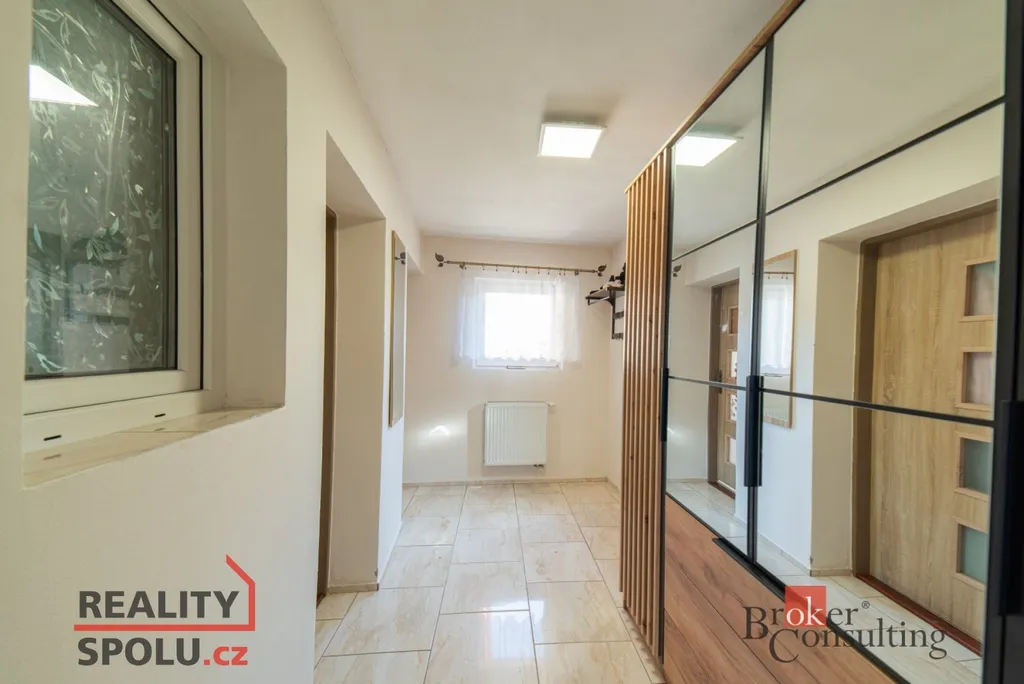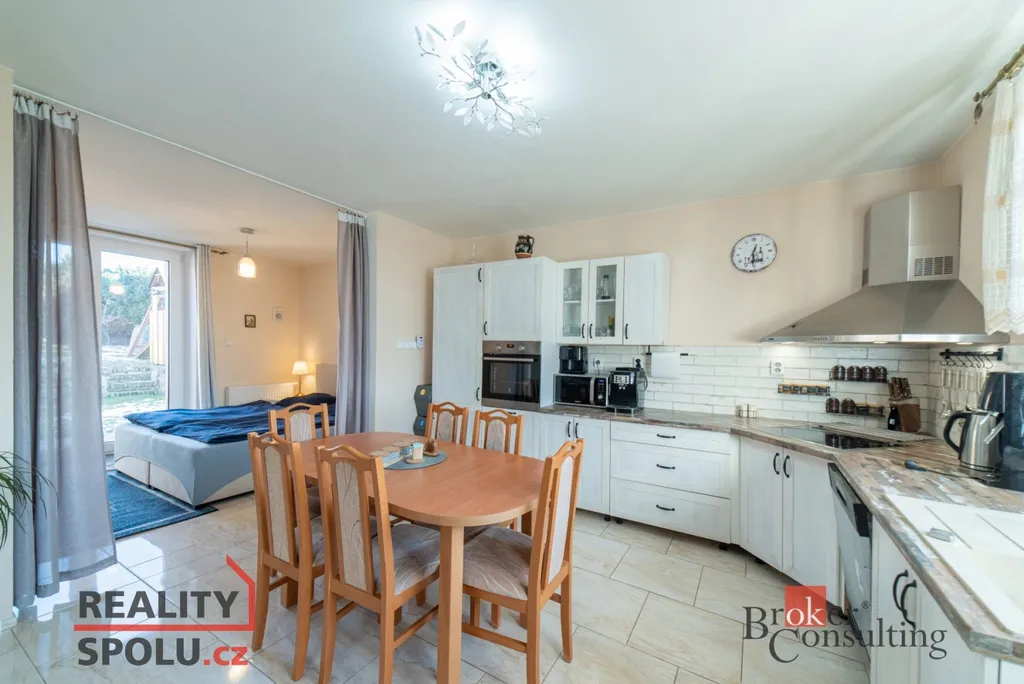 V přízemí se nachází kuchyň, obývací pokoj, ložnice, dětský pokoj a koupelna s WC. V podkroví byla zahájena rekonstrukce, která umožní vytvořit další obytné místnosti dle vlastních představ; součástí je také terasa s příjemným výhledem do okolí. Dům je podsklepený. Objekt je napojen na elektřinu, veřejný vodovod a kanalizaci, zároveň má vlastní studnu. Ústřední vytápění na pevná paliva zajišťuje kombinovaný kotel, ohřev vody obstarává bojler. Střešní krytinu tvoří betonová taška. Orientace na východ, jih a západ zajišťuje dostatek denního světla.